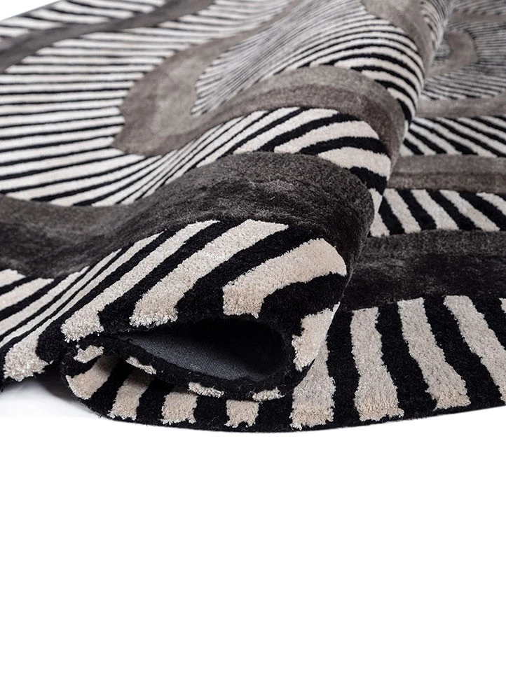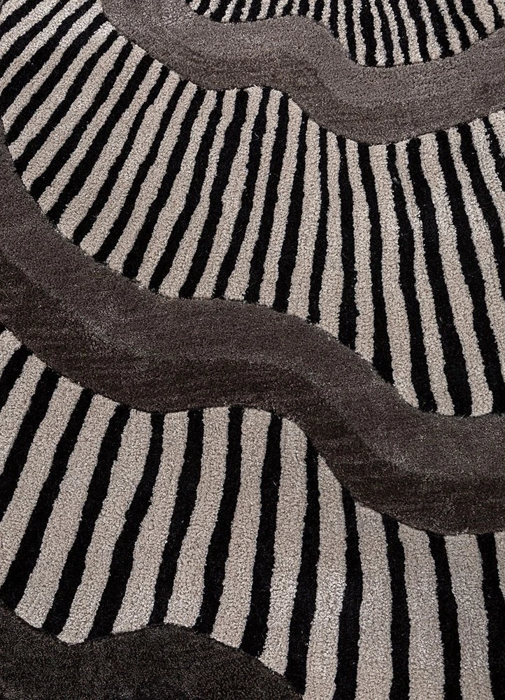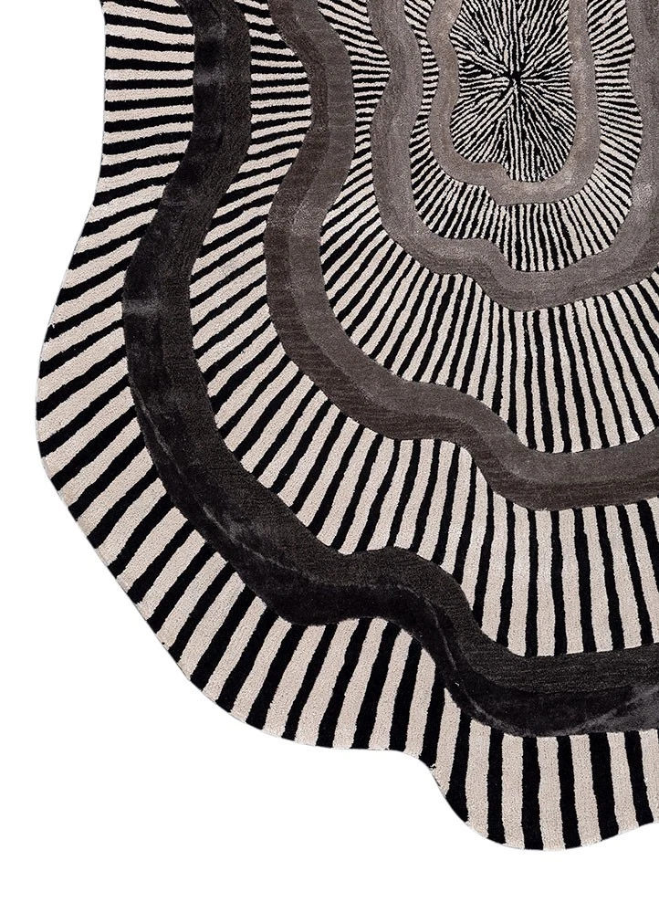 Bring a bold and artistic touch to your space with this modern abstract optical illusion area rug. Featuring a unique black and white concentric design with an irregular organic shape, this rug creates a stunning visual effect that instantly elevates any room.